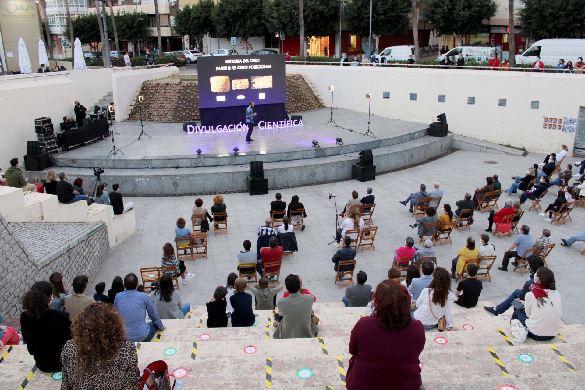 El Anfiteatro de la Rambla de Almería acogió la noche del pasado viernes la inauguración de este Aula que contó con la presencia de Eduardo Sáez de Cabezón, con su charla “El cero no es un cero a la izquierda”, y Manuel González, quien llegó con parte de su espectáculo ‘Astrocopla’. Ambos divirtieron al público a la vez que enseñaron ciencia.