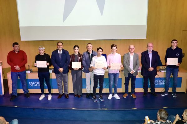 En cuanto a Juan José Moreno, decano de la Facultad de Ciencias Experimentales, ha definido la tarde compartida con alumnado y con familias como “muy positiva”, destacando que “IndalMat es un preámbulo para las Olimpiadas de Matemáticas que vamos a celebrar en enero en la fase local, luego la fase nacional, que será en Las Rozas”. El objetivo algo más lejano, pero muy ilusionante, es que “dentro de un año y unos pocos meses la Olimpiada nacional será aquí, en Almería, o sea que con esta edición ya estamos se puede decir que calentando motores”. Junto a coordinador, delegado y decano, han participado en la entrega Juan Ramón García, catedrático de Álgebra y director del Departamento de Matemáticas de la UAL, y Juan Ramón García, profesor de Secundaria y el responsable de la selección de los ejercicios del concurso.