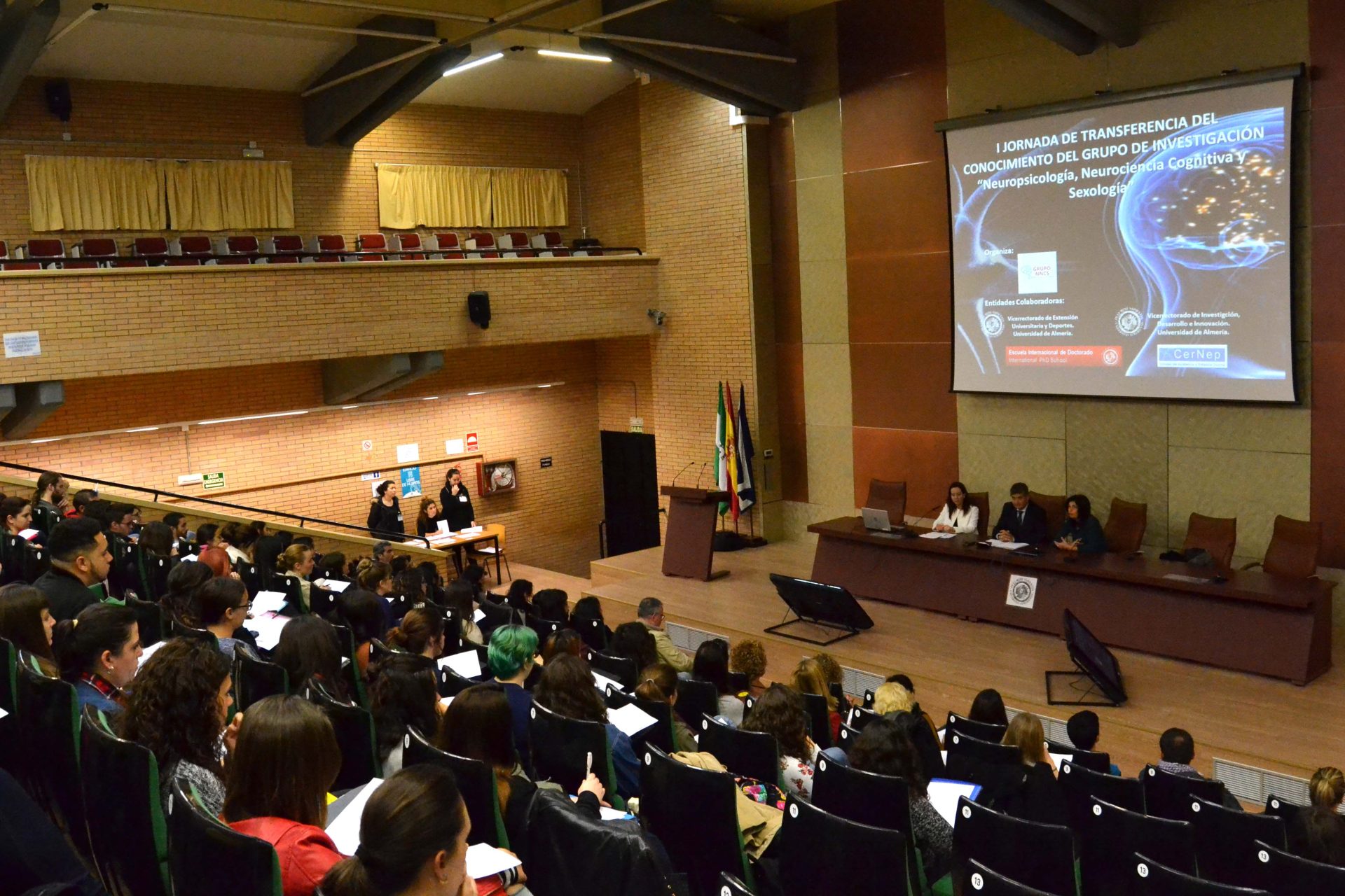 Con el objetivo de dar a conocer a toda la comunidad universitaria y a la sociedad almeriense en general, los principales resultados de investigación y los ámbitos de aplicación del conocimiento que se viene generando desde las diferentes líneas de investigación del grupo CTS-001’Neuropsicología, Neurociencia Cognitiva y Sexología’ de la Universidad de Almería, hoy se ha celebrado su I Jornada de Transferencia del Conocimiento. La Sala de Conferencias del edificio de Ciencias de la Salud ha acogido esta actividad dirigida a estudiantes de Grado, Máster y Doctorado; profesores, investigadores y profesionales del ámbito de las Ciencias de la Salud y de la Educación.