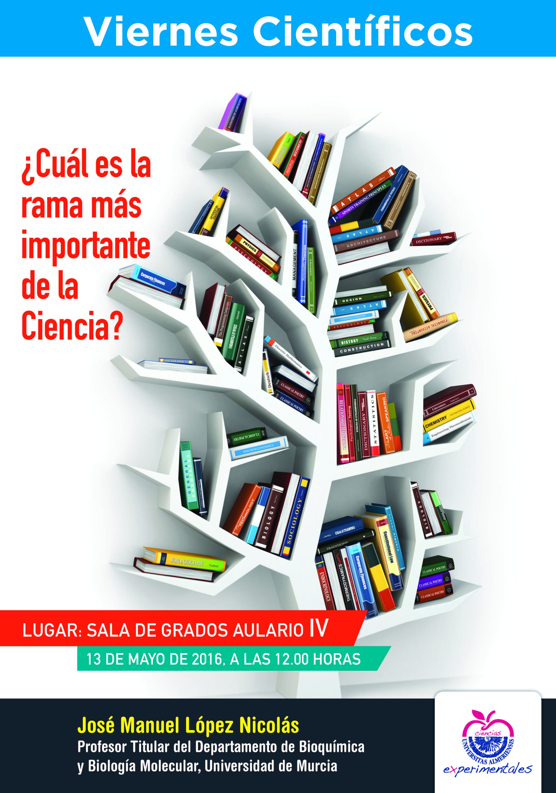 El próximo viernes, 13 de mayo, a las 12 horas, la Sala de Grados del Aulario IV de la Universidad de Almería acogerá la conferencia ‘¿Cuál es la rama más importante de la Ciencia?’, a cargo del profesor titular del Departamento de Bioquímica y Biología Molecular de la Universidad de Murcia, José Manuel López Nicolás. La ponencia se enmarca dentro de la actividad ‘Viernes Científicos’, una iniciativa, de periodicidad mensual, de la Facultad de Ciencias Experimentales de la Universidad de Almería que tiene como objetivo divulgar diferentes aspectos de la Ciencia y acercarlos de forma amena a la mayor cantidad de público posible.