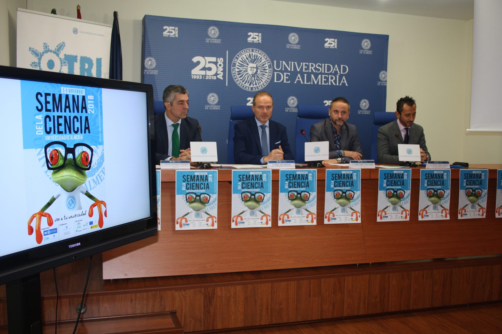 Del 5 al 9 de noviembre la UAL celebra la Semana de la Ciencia “el mayor evento de comunicación social de la ciencia y tecnología de nuestro país que pretende acercar el conocimiento científico y tecnológico a la sociedad difundiendo los resultados de la investigación entre la población”, ha indicado en su presentación, el vicerrector de Investigación de la UAL, Diego Luis Valera. Este evento tiene por objetivo “lograr una mayor compresión social de la ciencia y una mejor apreciación del impacto que tiene sobre la actividad cotidiana y la mejora de nuestra calidad de vida”. El evento está destinado y enfocado a los estudiantes de 4º de ESO, Bachillerato y Formación Profesional de la provincia de Almería.