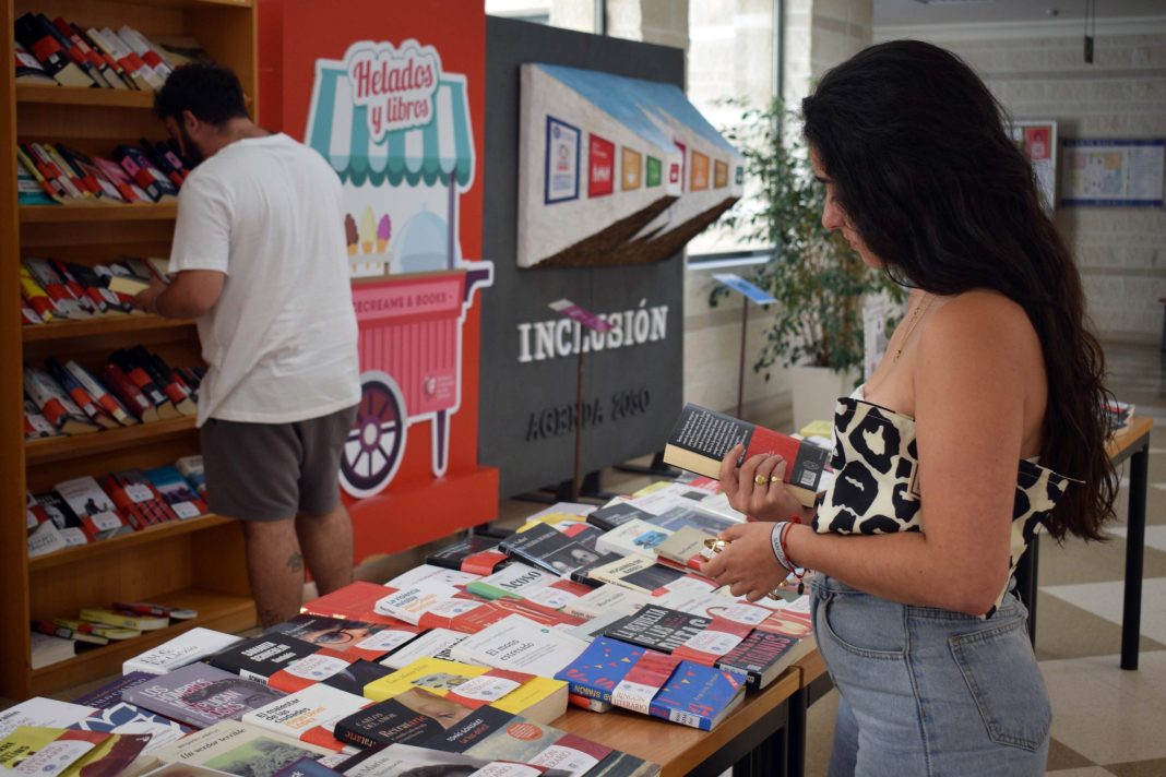 Llega el verano y con él, el tiempo de ocio y descanso, y un buen libro se convierte en la mejor compañía. Este año el lema del Rincón literario es ‘Bajo el sol abrasador, no te prives de un helado y ten siempre un libro al lado’. Ubicado, como cada año, en el vestíbulo de la biblioteca, las personas interesadas pueden encontrar obras de ficción y ensayo, de autores clásicos y contemporáneos. Pero además de los libros físicos, la propuesta veraniega cuenta con una alternativa digital a través de Préstam-e, la plataforma de libros electrónicos de la Biblioteca Nicolás Salmerón, con un amplio catálogo de libros en formato digital para los amantes de los e-books.