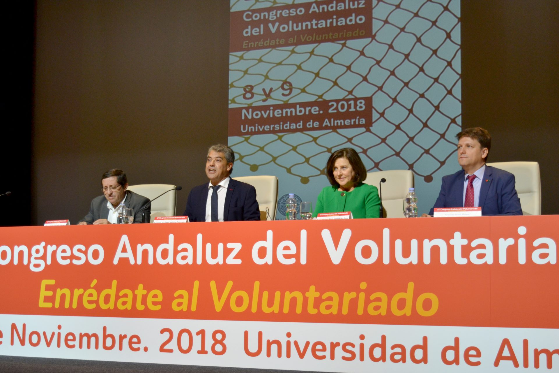 El campus de la Universidad de Almería es desde este jueves el epicentro del voluntariado andaluz y lo será hasta mañana viernes, 9 de noviembre. Esta tarde ha sido inaugurado el XII Congreso Andaluz de Voluntariado que organiza la Consejería de Igualdad y Políticas Sociales de la Junta de Andalucía y que se enmarca como uno de los actos programados con motivo del 25 aniversario de la UAL. Este congreso es un espacio de encuentro entre administraciones, empresas, entidades sociales y personas voluntarias que comparten proyectos dirigidos a la consecución de una sociedad más justa, en la que la igualdad de oportunidades sea real y efectiva. La inauguración ha corrido a cargo del rector, Carmelo Rodríguez, y la consejera de Igualdad y Políticas Sociales de la Junta de Andalucía, María José Sánchez.
