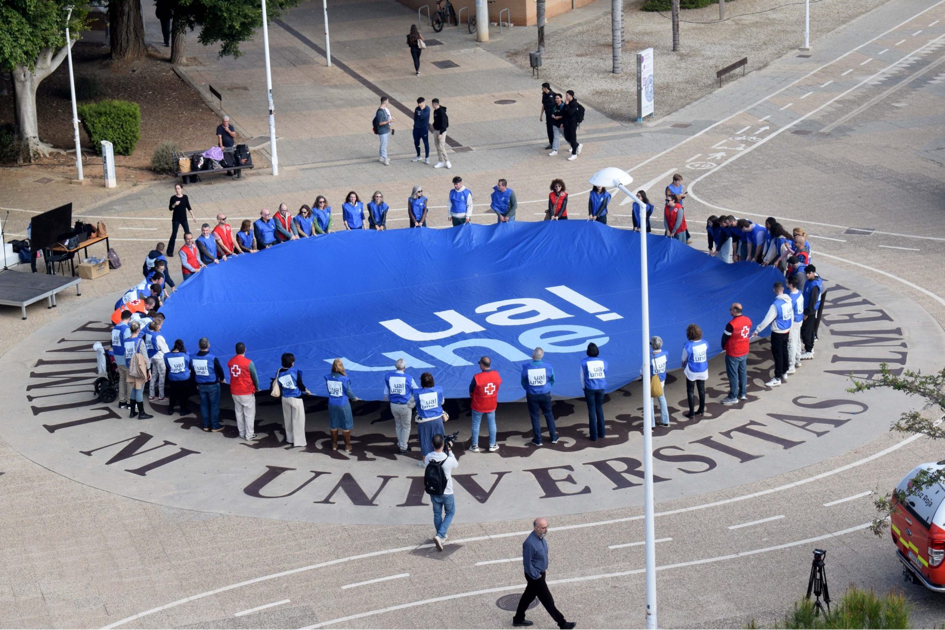 Como ya es tradición, el escudo de la UAL ubicado en el pasillo central del campus de La Cañada ha sido el lugar elegido para la celebración, de la mano del programa UalUne de la Universidad de Almería, de la IV edición del #GivingTuesday, movimiento global que promueve la solidaridad entre personas, organizaciones y empresas.