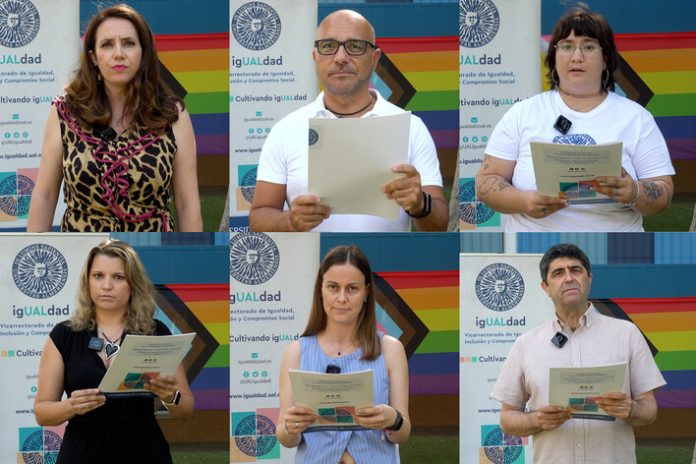 Quienes formamos parte de la Universidad de Almería reafirmamos hoy este compromiso y os invitamos a sumaros, juntos y juntas, en la defensa activa de la diversidad y de los derechos humanos para todas las personas».