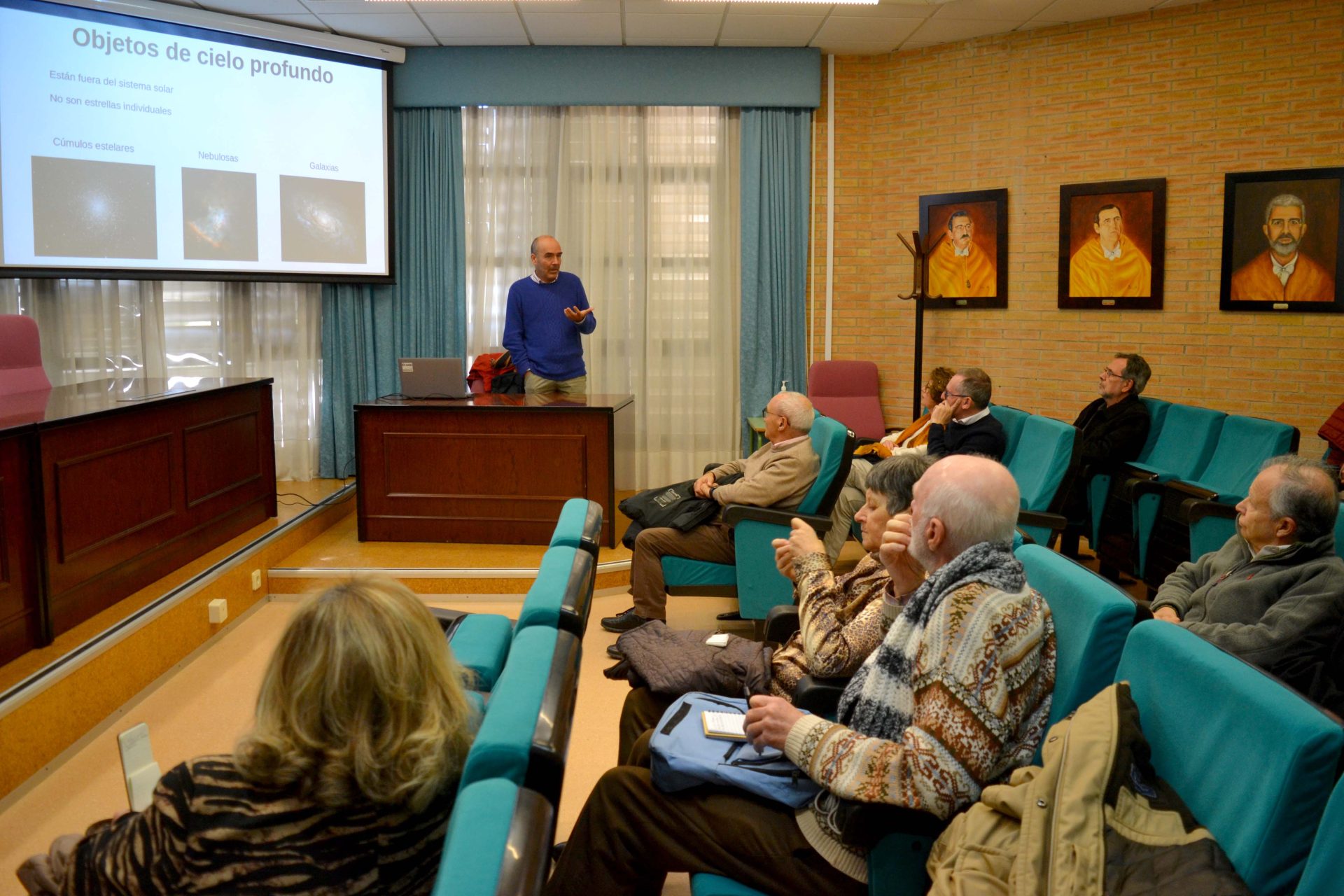 El encargado de la misma es Jorge Iglesias, astrofísico del CSIC y director del Aula de Astronomía. El tema elegido para este mes de enero ha sido el de los objetos de cielo profundo. “Es como se conoce en el mundo de la astronomía aficionada a objetos que no son del Sistema Solar, ni estrellas individuales. Aunque agrupados bajo el mismo término, los objetos de cielo profundo tienen naturalezas muy variadas y diferentes entre sí. Estamos hablando de básicamente nebulosas, cúmulos estelares y galaxias”, ha explicado.
