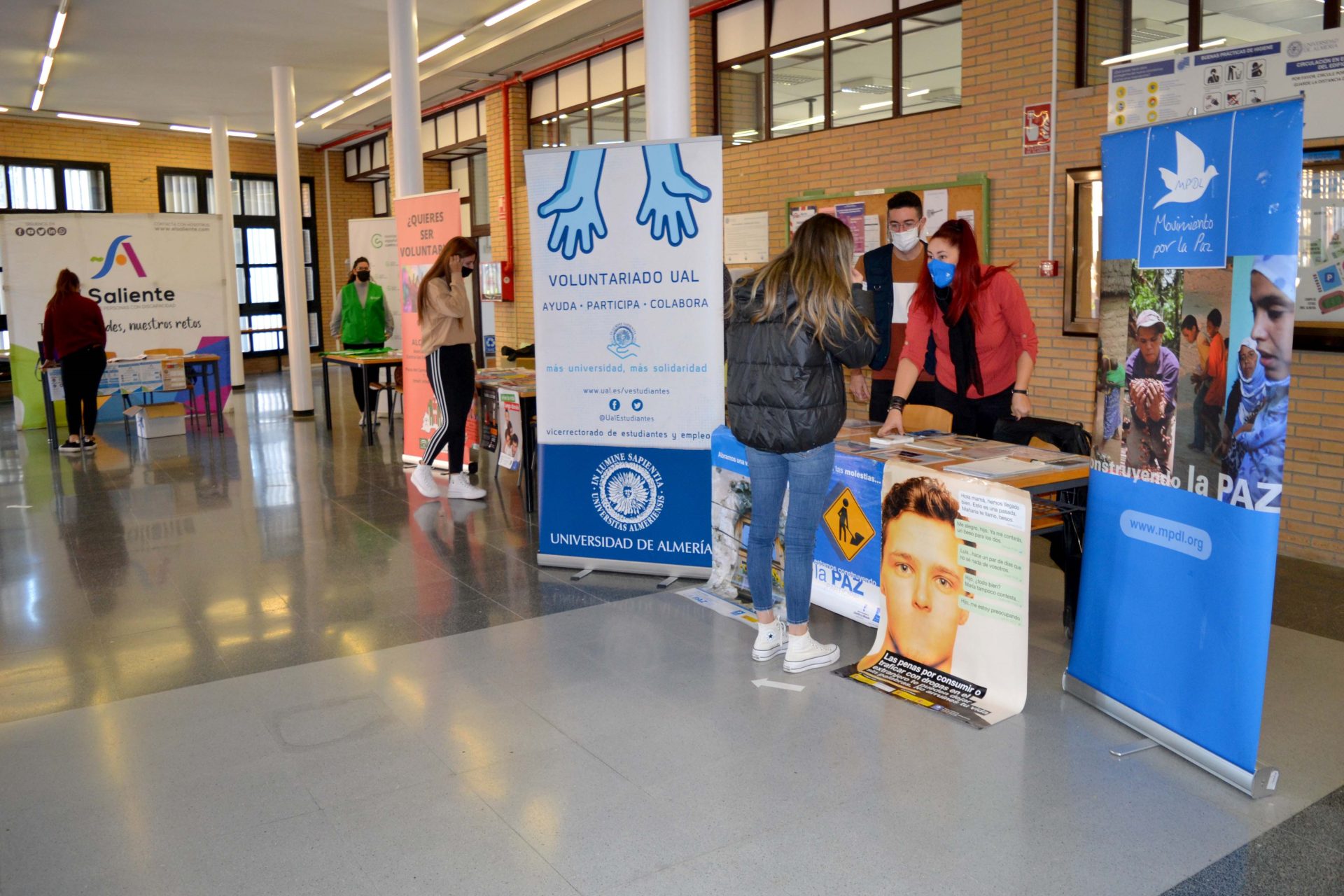 «Se trata de un mes de plena solidaridad en el que realizamos actividades de sensibilización, de formación y de implicación. Instalamos mesas informativas en las que participan entidades de voluntariado que nos dan a conocer la labor social que realizan. Son entidades que trabajan en ámbitos diferentes como mujeres, apoyo al enfermo, discapacidad y derechos humanos, entre otros», ha explicado en el inicio de esta actividad Toñi Díaz, trabajadora social y gestora de voluntariado de la Universidad de Almería.