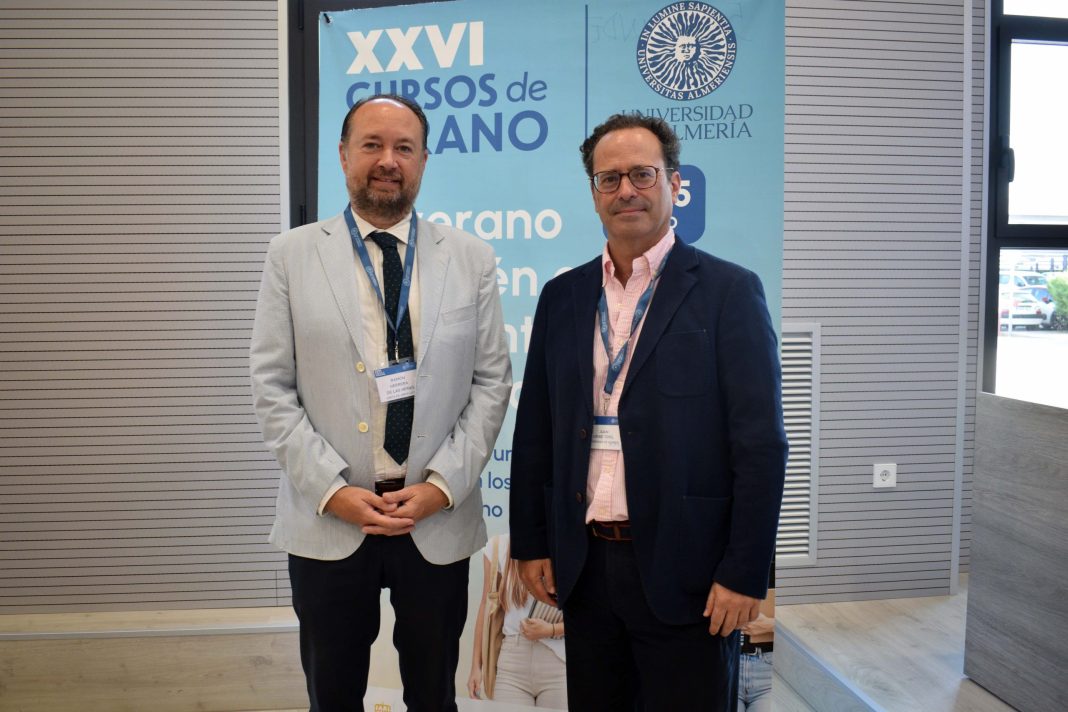 El primer ponente del curso ha sido Ramón Herrera de las Heras, secretario general de Universidades de la Junta de Andalucía, con la ponencia ‘La universidad que viene. Sostenibilidad y cambio climático’. En su intervención ha querido trasladar lo que desde la Consejería de Universidades entienden pro sostenibilidad en el ámbito universitario. “Creo que hay que hacer una apuesta muy importante por la sostenibilidad. Estamos trabajando en la nueva ley, que en pocos meses se va a mandar al Parlamento, en la que recogemos de manera transversal la sostenibilidad, porque creemos que no solamente hay que impartir docencia sobre sostenibilidad en titulaciones, que efectivamente las hemos incorporado en esas nuevas titulaciones que se han aprobado este año, sino que también hay que aplicar la sostenibilidad en el funcionamiento en la gestión de la Universidad”.