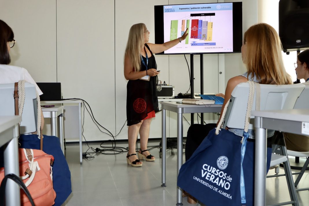 Durante tres jornadas, de miércoles a viernes, la Universidad de Almería traslada a sus Cursos de Verano una de las cuestiones sobre las que ya viene trabajando desde hace un tiempo y a la que ha dedicado diversas actividades. Dirigido por Lorena Gutiérrez y por Carmen Ruiz, lleva por título ‘Salud ambiental: abordaje clínico del exposoma’. Se trata de una oportunidad única para formar a los profesionales de la salud en la identificación, prevención y manejo de las enfermedades ambientales, cuyo aumento se vincula directamente con las exposiciones químicas, físicas, biológicas…, acumuladas a lo largo de la vida. Su programa aborda temas como toxicidad por metales, disruptores endocrinos, microtoxinas, calidad del aire y campos electromagnéticos, que se consideran críticos en tanto que representan amenazas significativas para la salud pública.