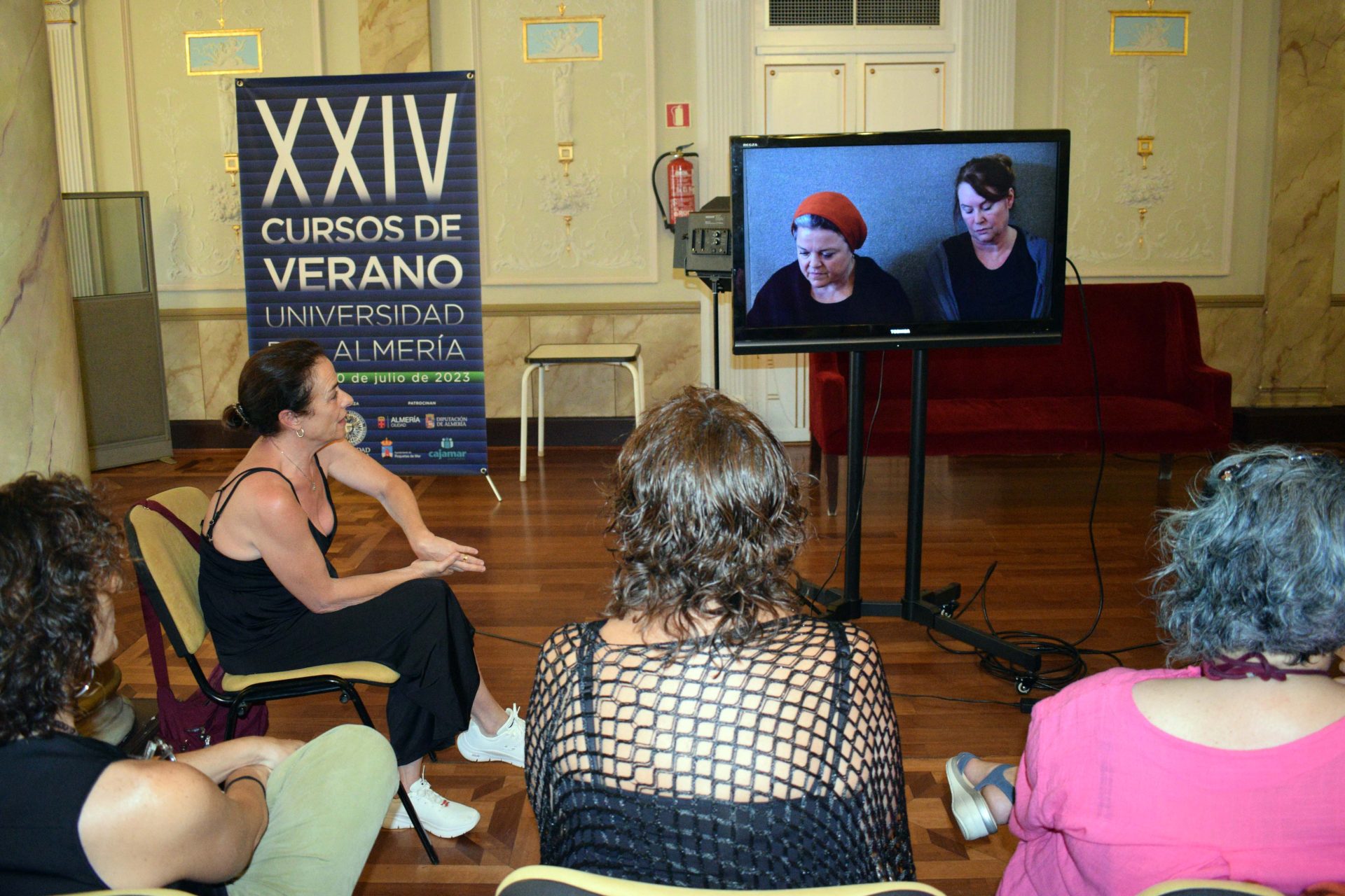 Un monólogo más una escena en pareja ante una de las directoras de casting más importantes de nuestro país, son los ejercicios que han podido realizar los estudiantes del Curso de Verano Filming Almería, organizado por la Universidad de Almería junto a la Diputación Provincial, que en su séptima edición ha tenido como protagonista a Rosa Estévez, bajo el título ‘Actuar ante la cámara’.