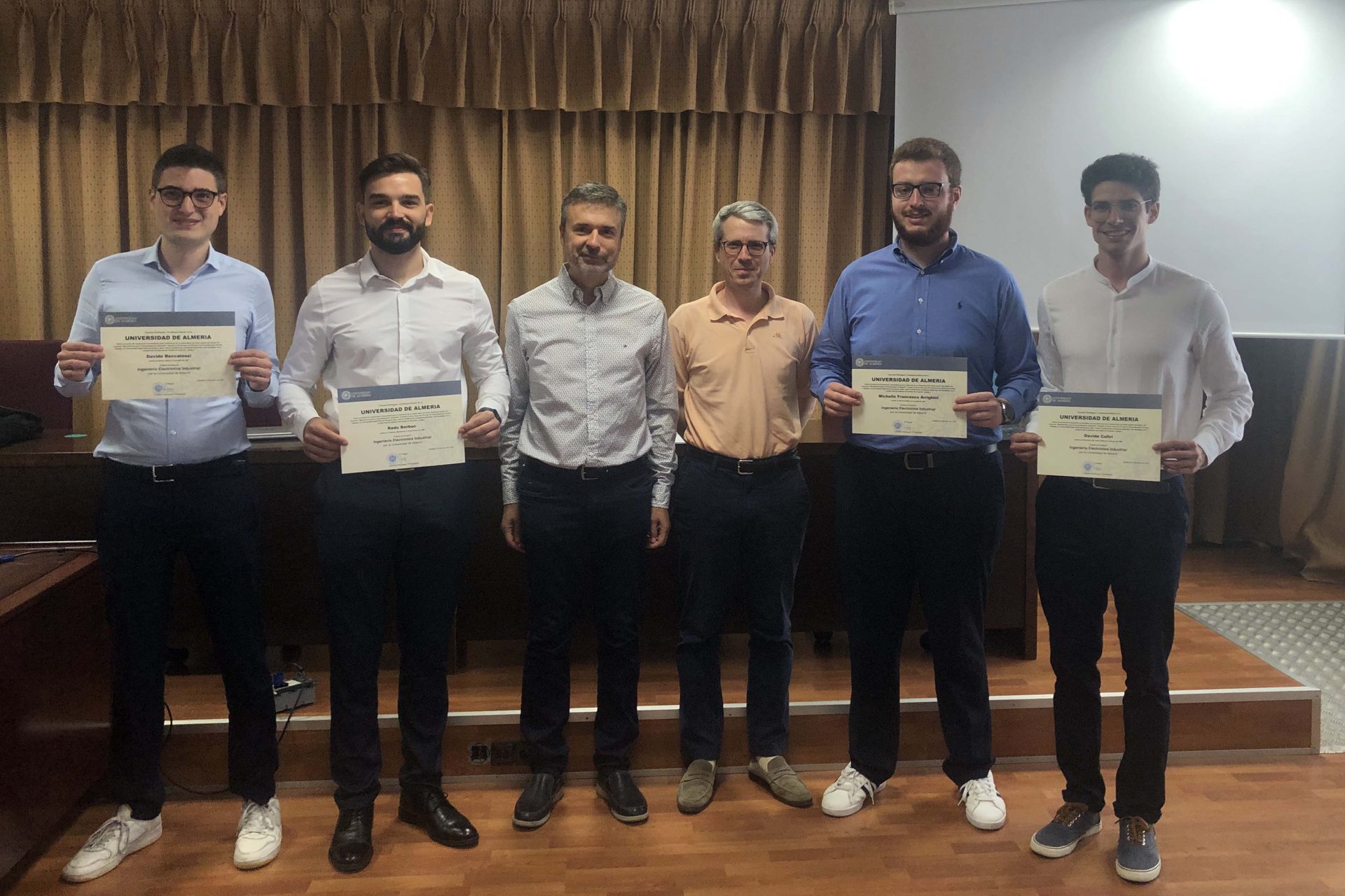 Tras defender con éxito sus Trabajos de Fin de Grado en la Sala de Grados de la Escuela Superior de Ingeniería, los estudiantes italianos Michele Francesco Arrighini, Davide Beccalossi, Radu Berbec y Davide Coltri han obtenido el doble título en Ingeniería Electrónica Industrial por la Universidad de Almería y Laurea in Ingegneria dell’Automazione Industriale por la Universidad de Brescia (Italia).