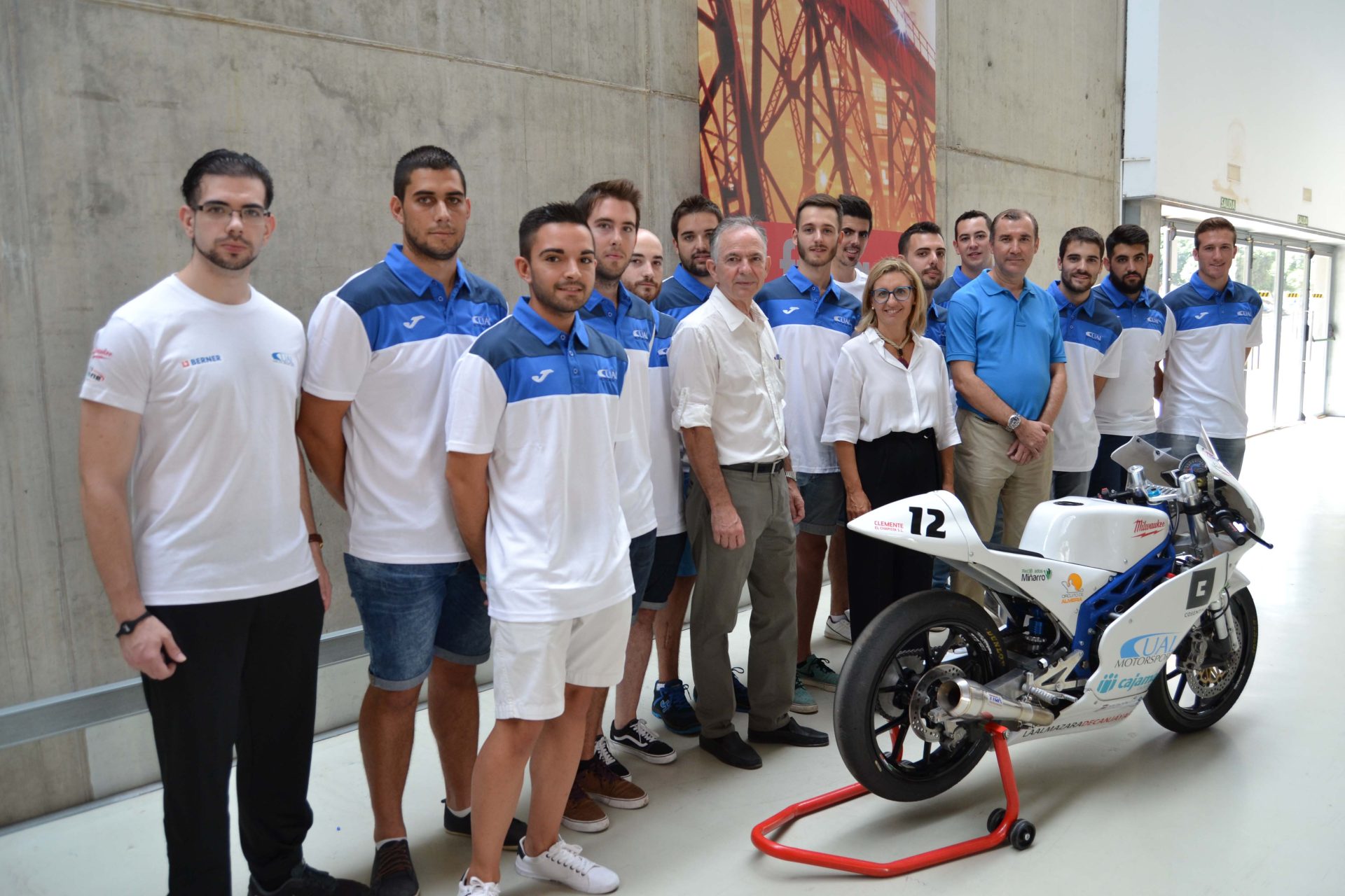 Acompañados por la vicerrectora de Estudiantes y Empleo, Maribel Ramírez; el director de la ESI, Antonio Giménez y el profesor José Antonio López, en el hall del Aulario IV, han contado que se trata de una moto, en cuyo diseño se han utilizado las últimas tecnologías e innovaciones en cuanto a diseños de chasis, con nuevos materiales de gran ligereza y resistencia; y sistemas electrónicos y eléctricos integrados.