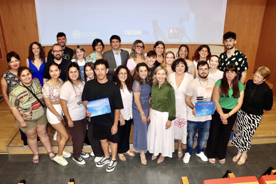 ‘Los cuidados tienen voz’, de Carmen Rodríguez, Lucía López, María Isabel Fernández, Alba Martos y María del Mar Castro, se ha hecho con el triunfo en el Social Pódcast UAL 2025, el IV Festival de Pódcast de la Universidad de Almería. Ha sido merecedor del primer premio por precisamente ponerle voz a las personas que sostienen la sociedad desde el cuidado a los demás: “Gracias por darnos la oportunidad de darle visibilidad a un tema tan importante; nosotras mismas no nos habíamos dado cuenta de su relevancia hasta que nos pusimos a trabajar sobre ello, lleno de mujeres que son referentes”. Estudiantes de Educación Social, primer curso, han utilizado este recurso radiofónico dentro de la asignatura Políticas Sociales y Estado del Bienestar.