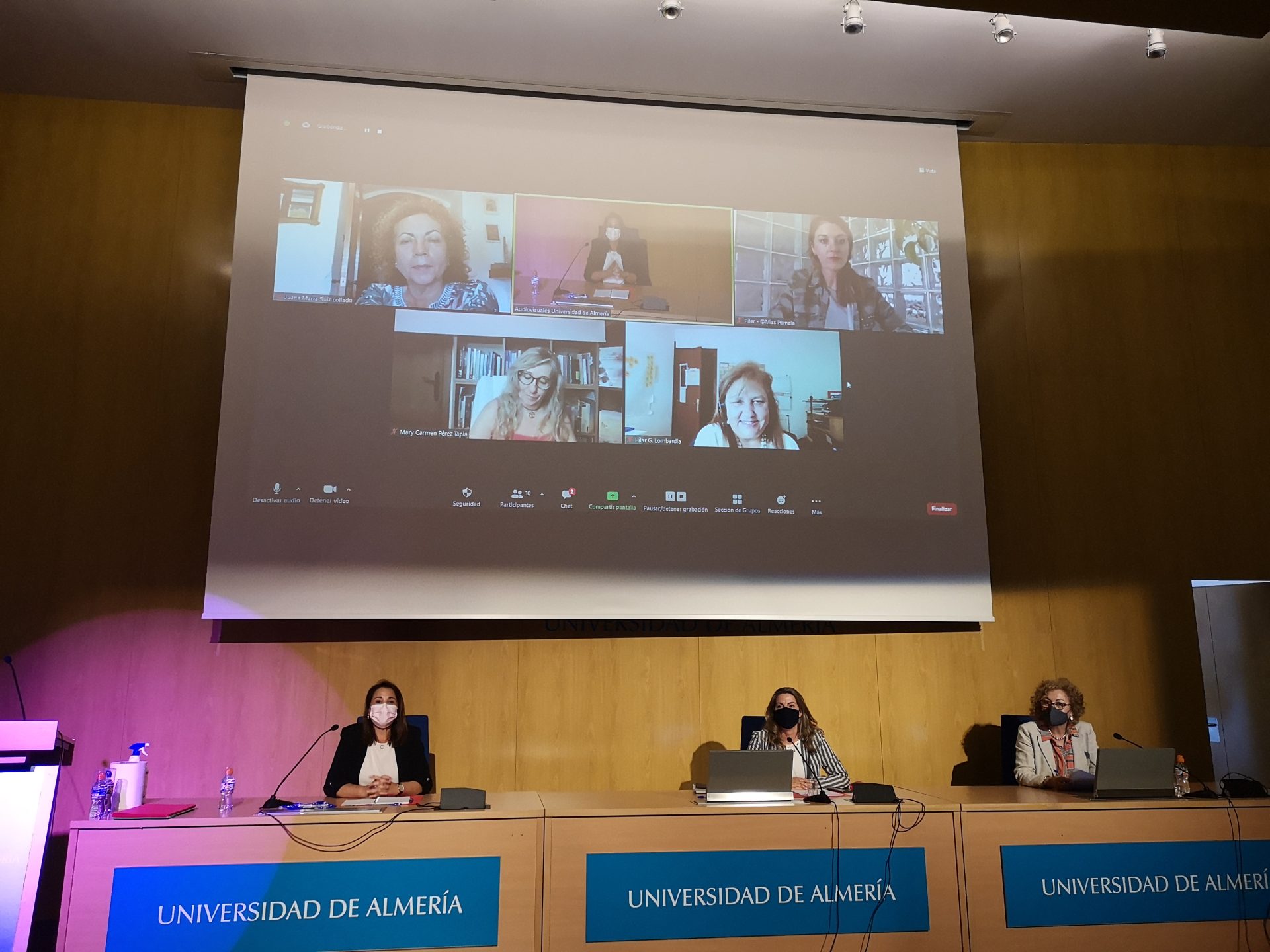 La UAL ha visto culminada con gran éxito la primera edición de una propuesta creada por la Asociación de Mujeres Profesionales y Directivas ‘Foro Mujer y Sociedad’, que ha llegado para romper moldes. Así, este martes 18 de mayo se ha mostrado el fruto del trabajo desarrollado durante el I Programa de Mentoring: ‘Liderando en Femenino’; ha sido a través de una puesta en común reconfortante, con formato de seminario, realizada en la Sala de Conferencias de Ciencias de la Salud de la Universidad de Almería y, también, con la participación de varias intervinientes a través de la red, dado lo limitado del aforo que la pandemia sigue permitiendo. El título del acto ha sido ‘Experiencias de Mentoring: Nueva Herramienta de Futuro en la Práctica Universitaria’. Ha estado presidido por la directora de la Unidad de Igualdad de la UAL, Eva Díez, y por la presidenta del ‘Foro Mujer y Sociedad’, Rosario Ruiz, coordinado a su vez por Rocío López, profesora titular de Derecho Civil.