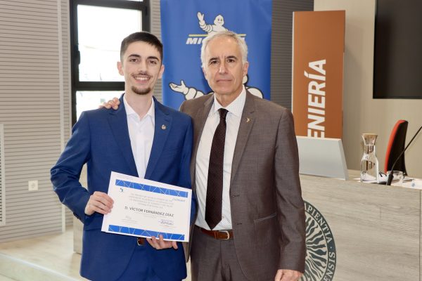 La misma idea de agradecimiento a las familias ha expresado Rosa Ayala, que también ha recordado que ya son 14 las ediciones y ha subrayado que “este año provoca todavía más ilusión porque también están los estudiantes de Ingeniería Informática, poniendo así de manifiesto esta especialización dentro de la industria”. Está siendo fundamental para Michelin la aportación de este alumnado en la implementación de la Inteligencia Artificial, por ejemplo. Ha tenido unas palabras cargadas de cercanía hacia los premiados y de agradecimiento hacia Michelin “por su alto nivel de compromiso” y por lanzar “un mensaje muy claro: que el esfuerzo merece la pena y que el talento hay que apoyarlo”. Relevante es que “a lo largo de estos años muchos estudiantes han tenido la oportunidad de acercarse al mundo profesional gracias a las prácticas curriculares, a las becas del Programa Talento D-UAL y a la realización de sus TFG y TFM en Michelin”. Ayala ha manifestado que “la ESI está muy orgullosa de la formación que ofrece”, no solo respecto a conocimientos técnicos, sino “otras habilidades como trabajo en equipo, análisis, resolución de problemas y liderazgo”.