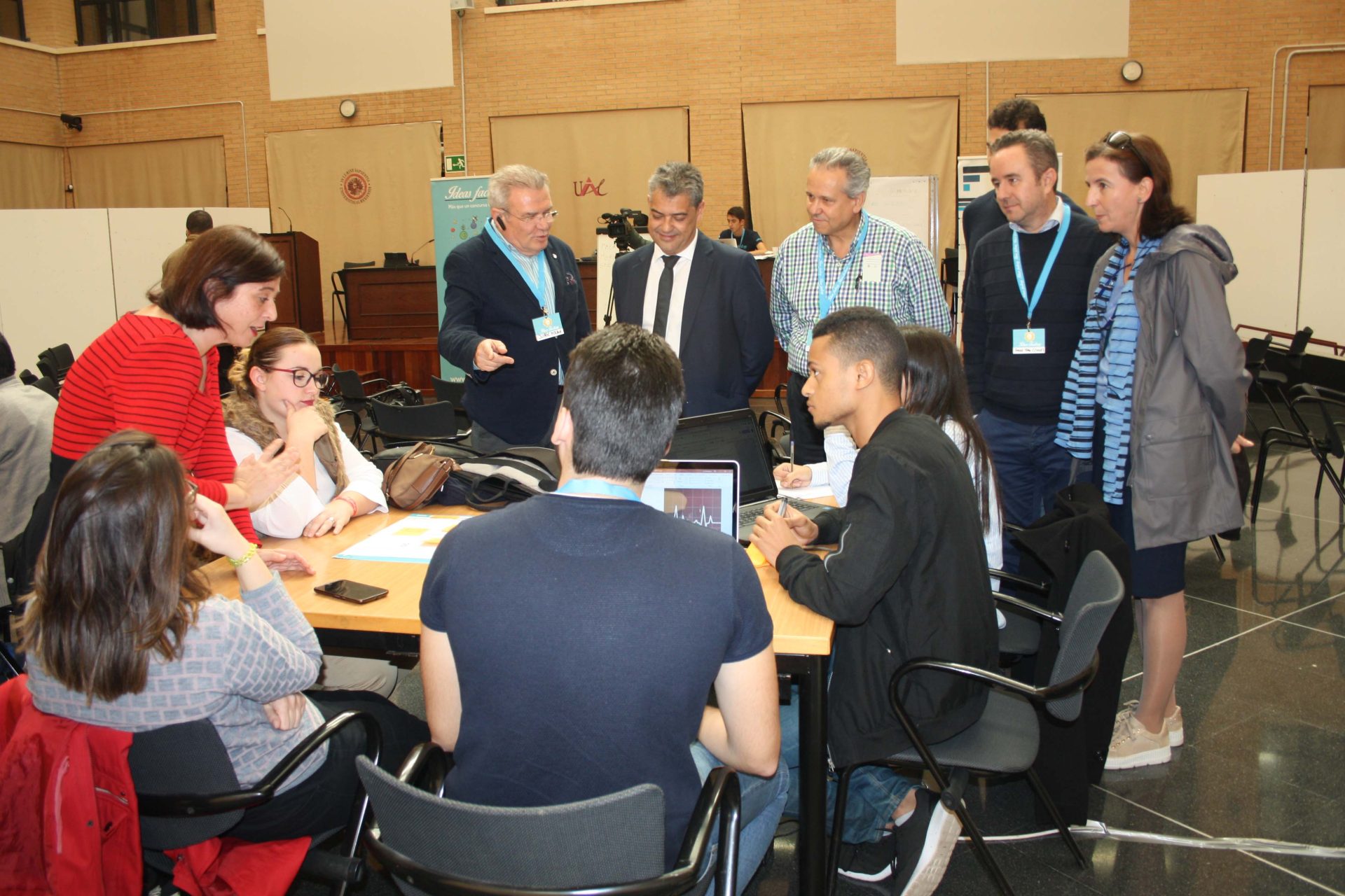 El rector de la UAL, Carmelo Rodríguez, ha estado charlando con los participantes y conociendo en primera persona las nueve ideas finalistas de esta segunda edición. “Este proyecto es uno de los que tenemos englobados dentro de nuestro de ánimo de intensificar todo lo que se pueda la inserción laboral y el emprendimiento”. Para el rector se trata de uno de los eventos más bonitos de los que se desarrollan en el campus porque “se consiguen muchos fines con este proyecto como son la transmisión de conocimiento, el contacto social con equipos de trabajo con personas que no se conocían hasta ahora y que son de diferentes disciplinas. Se desarrollan habilidades de comunicación y lo mejor que tiene el ser humano que es la capacidad de imaginar ideas, que es lo que nos hace progresar”.