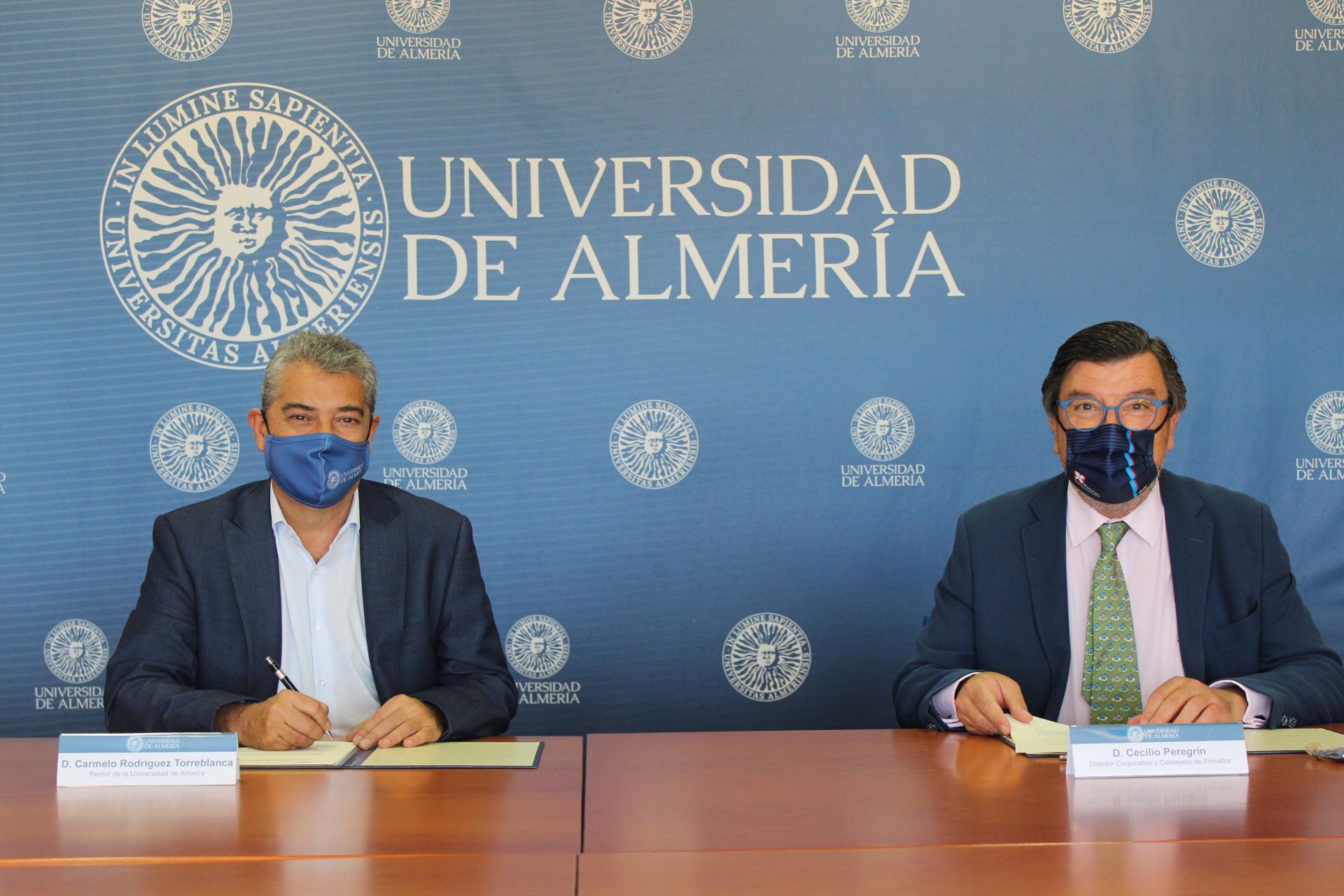 Carmelo Rodríguez, como rector de la UAL, y Cecilio Peregrín, director corporativo y consejero de Primaflor, han rubricado un documento que servirá de base para un proyecto ambicioso y que da testimonio de los intereses compartidos por ambas partes en el marco de la industria agroalimentaria y los buenos hábitos en la alimentación.