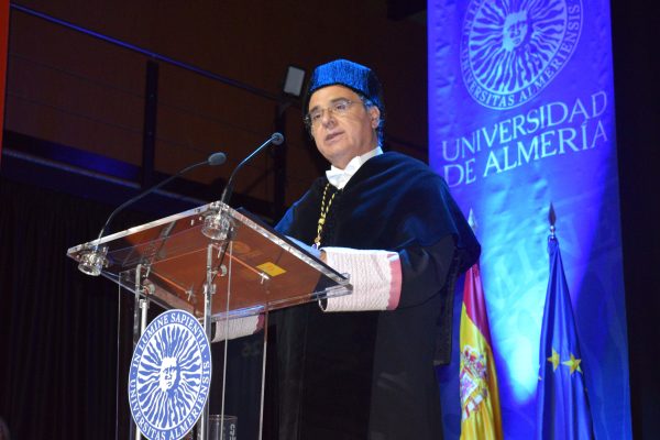 En el acto solemne, presidido por el rector, el secretario general de Universidades de la Junta ha anunciado un ingreso de 2 millones de euros adicionales a la UAL como nivelación por ser la universidad pública andaluza que menos percibe por estudiante