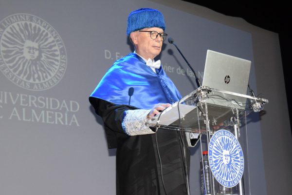 El discurso también se ha centrado en uno de los grandes desafíos de la institución: la financiación pública básica. El rector ha sido contundente al señalar la situación de la UAL dentro del modelo andaluz. “La Universidad de Almería recibe una financiación básica por estudiante que la sitúa en última posición a nivel andaluz». Y ha detallado que esta diferencia con la media supera los 600 euros por estudiante lo que “se traduce directamente en una menor capacidad para cumplir adecuadamente con nuestras funciones» y resulta “profundamente injusta». El rector ha concluido su reclamación con una firme declaración: “Nuestra sociedad no se puede permitir el lujo de ver disminuida la capacidad de aportación de una universidad como la de Almería».