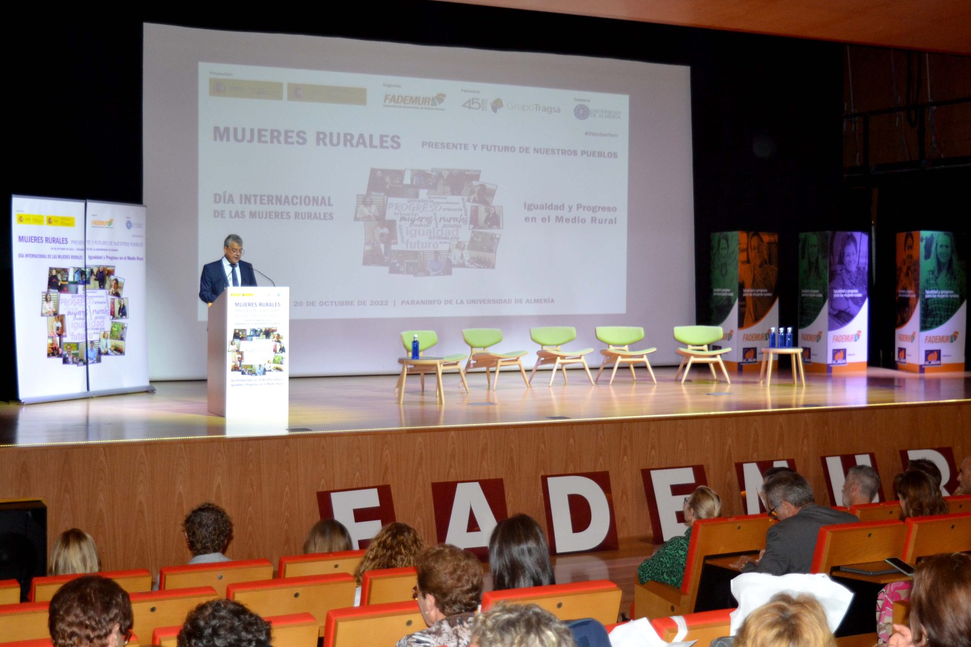 El Paraninfo de la Universidad de Almería ha acogido unas jornadas organizadas por FADEMUR (Federación de Asociaciones de Mujeres Rurales) que han contado con la presencia del ministro de Agricultura, Pesca y Alimentación, Luis Planas.
