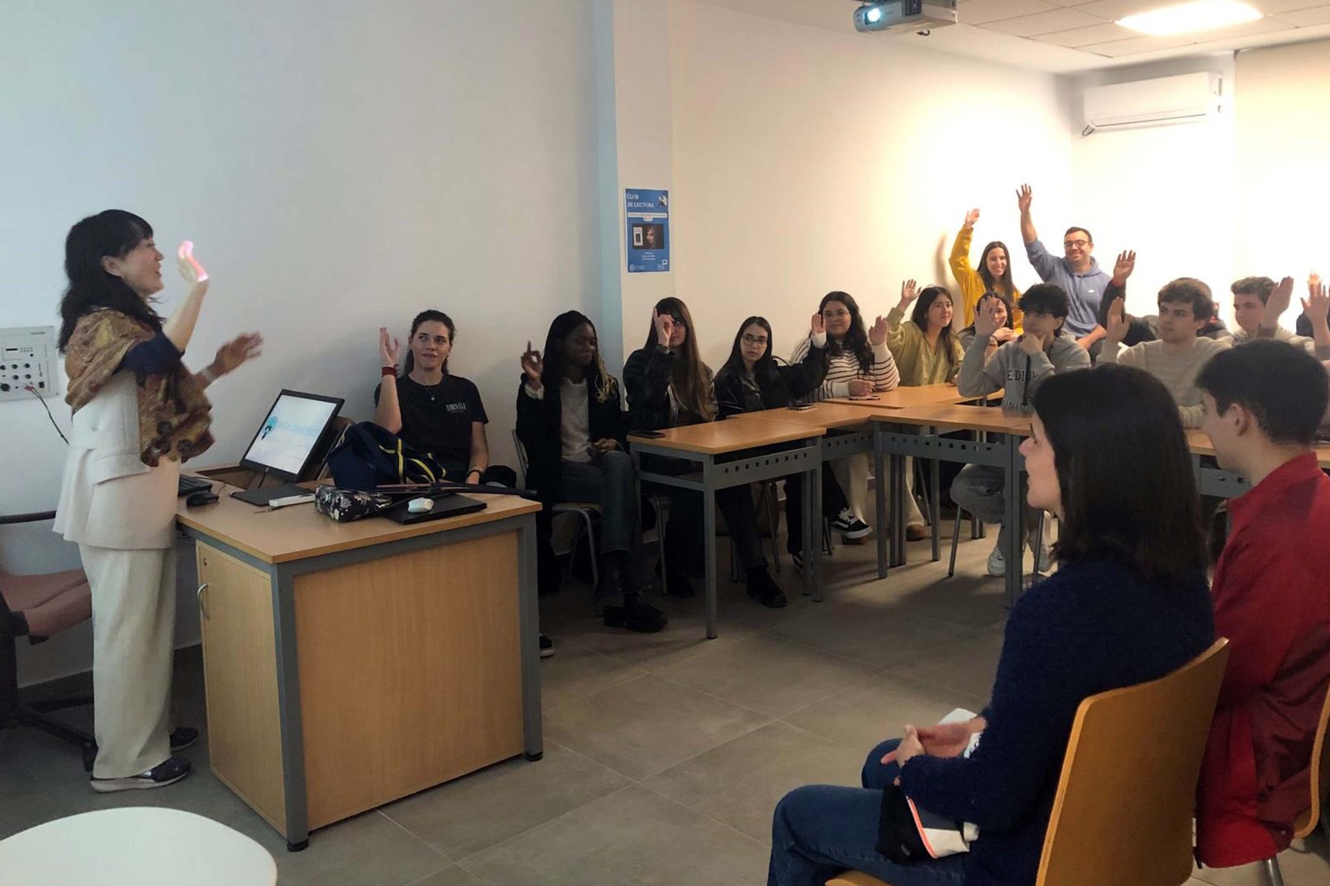 El interés por el país del sol naciente es recíproco. La profesora acompañante de la Universidad de Saga ofreció una sesión informativa, titulada ‘Cómo estudiar en Japón’, para alumnos de la UAL interesados en realizar estancias académicas en Japón. La convocatoria fue un éxito rotundo, completando el aforo con la asistencia de entre 35 y 40 estudiantes, lo que demuestra el creciente deseo de movilidad hacia el continente asiático.