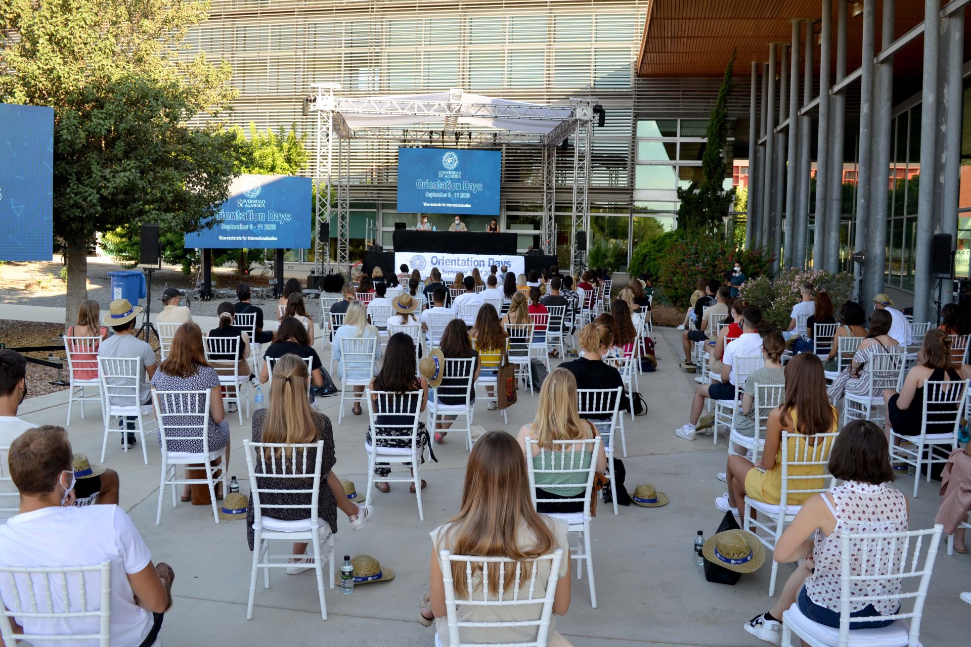 Estas Jornadas de Orientación Internacional es la primera actividad académica que se celebra en el campus. Por eso para su inauguración se han tomado todas las medidas de seguridad y se ha elegido un espacio al aire libre, como es las inmediaciones del Edificio de Gobierno, para celebrar el acto. “La experiencia está siendo muy placentera, agradable y vistosa y nos planteamos hacerla en el futuro también al aire libre”.