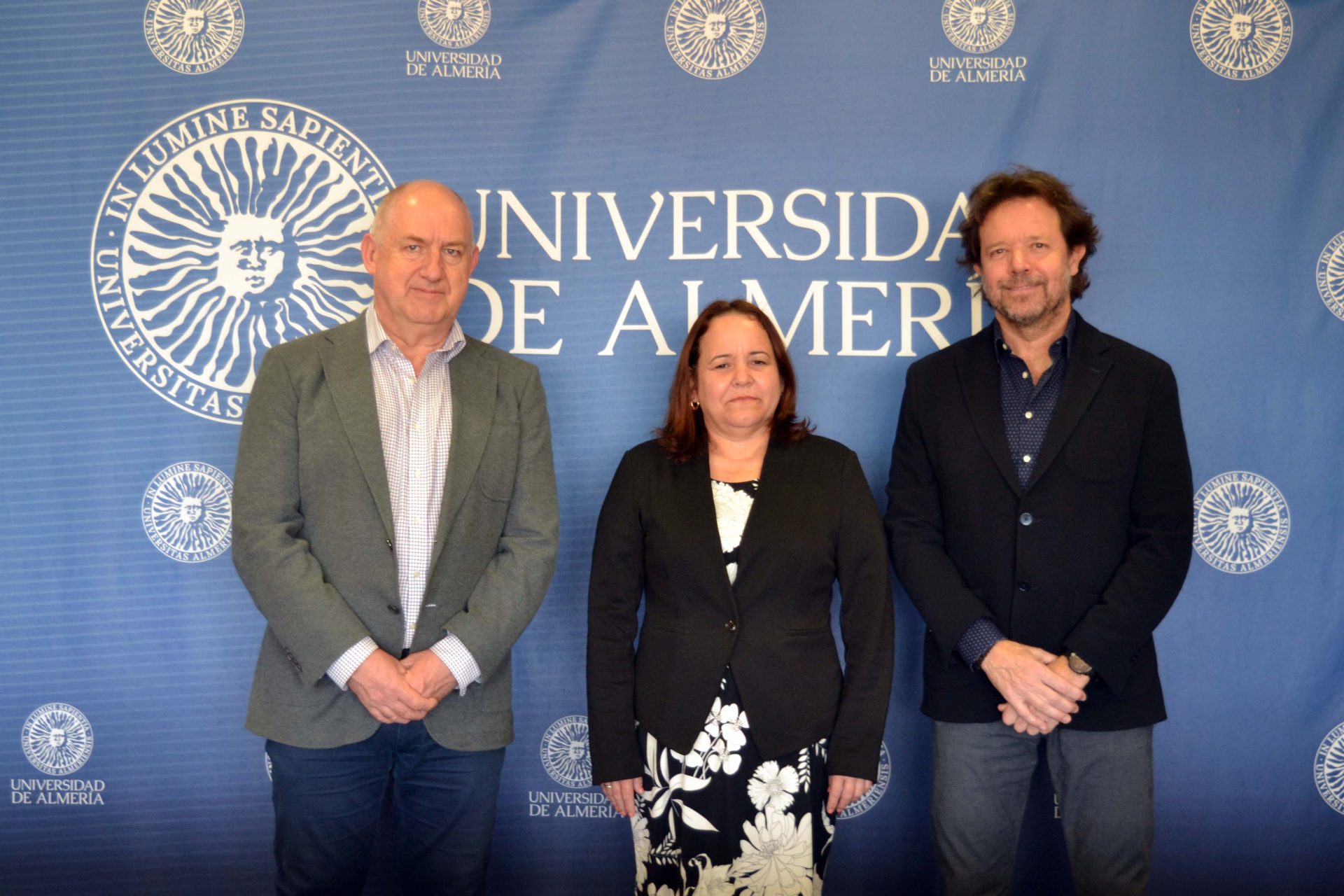 Esta semana la Universidad de Almería ha recibido la visita de Arelys Falcón, rectora de la Universidad de Ciencias Médicas de Cienfuegos de Cuba. Durante dos días ha estado manteniendo reuniones con el fin de afianzar las relaciones entre ambas instituciones, tras ser recibida por Tomás Lorenzana, director de Estrategia de Internacionalización y Gabriel Aguilera, decano de la Facultad de Ciencias de la Salud.