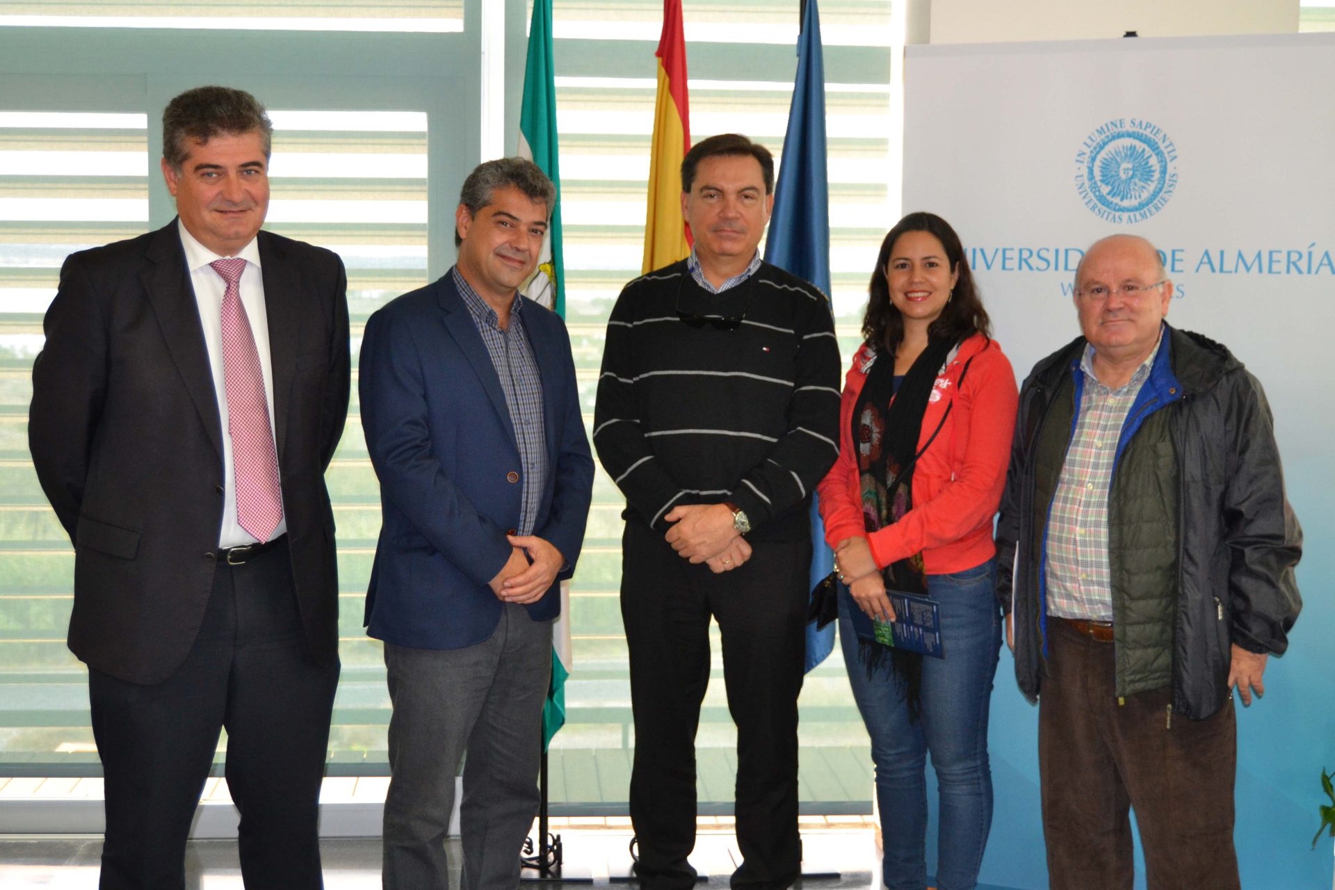La Universidad de Almería y la Universidad Tecnológica de Pereira (UTP-Colombia) aúnan esfuerzos para colaborar en futuras acciones de formación e investigación, y acortar distancias entre ambos lados del océano. El rector de la Universidad Tecnológica de Pereira (UTP-Colombia), Luis Fernando Gaviria Trujillo, y Lina María Suárez, directora de la Maestría en Desarrollo Agroindustrial de la citada Universidad han sido recibidos este martes, 22 de noviembre, por el rector de la Universidad de Almería, Carmelo Rodríguez; el vicerrector de Investigación, Antonio Posadas; y Francisco Camacho, catedrático de Producción Vegetal y es el delegado del Rector para la puesta en marcha del CIAIMBITAL.