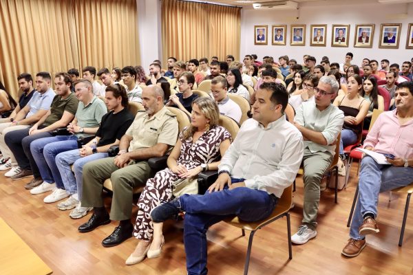 Se ha logrado una masiva asistencia de estudiantes, con el interés en conocer directamente con sus propias palabras las experiencias de Francisco José Moreno, de Ángela Otero y de Miguel Ángel Sánchez. Los tres han formado equipo, becados por Talento D-UAL y con ‘destino’ en Michelin, con Francisco Oliva, precisamente un egresado de la Universidad de Almería que también tuvo la misma oportunidad y que acabó siendo contratado por la multinacional. Juntos han trabajado en satisfacer una necesidad que tenían desde la empresa, ofreciendo la solución gracias a los conocimientos adquiridos en la Escuela Superior de Ingeniería. Ha sido fundamental el carácter multidisciplinar del grupo, uniendo las ingenierías Informática, Mecánica y Electrónica para la obtención del resultado final: un vehículo autónomo que evita tener que usar conductor en terrenos accidentados en los que se prueban los neumáticos.