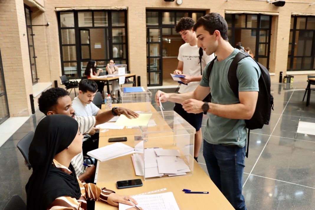 Se han llevado a cabo con normalidad y sin incidencias las votaciones para designar a las personas integrantes de la Junta de la Facultad de Derecho. Se había convocado a la participación a PDI, PTGAS y alumnado, cada uno de los estamentos llamado a elegir a sus propios representantes, y han respondido acudiendo masivamente, pero de manera escalonada a lo largo del día. Han ejercido su derecho al voto en la Sala Bioclimática del Edificio Departamental de Humanidades y Ciencias de la Educación A, en la que se han instalado cinco urnas en un proceso que ya se ha realizado durante los pasados meses en el resto de las facultades a excepción de Ciencias Económicas y Empresariales, en la tendrá lugar el próximo lunes, día 9 de junio.