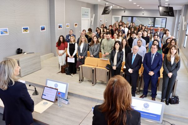 Eva Carmona, por su parte, se ha referido a la celebración del patrón como “un punto de encuentro esencial para la interacción entre nuestra comunidad y los agentes económicos y sociales de nuestro entorno”. Renovado su mandato recientemente tras llevarse a cabo elecciones el pasado verano, la decana ha agradecido el apoyo recibido y ha confesado asumir “con ilusión los nuevos retos de la etapa que se abre”. Ha citado su “compromiso con la excelencia”, definiéndolo como “firme”, anunciando su materialización a través de “un eje estratégico prioritario: la adaptación de nuestros planes de estudio al Real Decreto 822/2021”. Se trata “no de un mero trámite administrativo, sino de una respuesta necesaria a una sociedad en permanente cambio, que nos exige ser cada vez más ágiles y flexibles”. El objetivo de su equipo decanal es “aprovechar este marco para impulsar una innovación efectiva en la docencia, que sitúe a nuestros estudiantes a la vanguardia de los cambios disruptivos en la economía y la tecnología”.