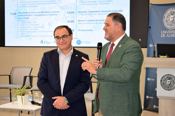 Por su parte, el delegado de Desarrollo Educativo y FP y de Universidad, Investigación e Innovación, Francisco Alonso, ha puesto en valor durante la inauguración de la jornada “la apuesta de la Consejería de Universidades de la Junta de Andalucía que, a través de la Fundación Pública Andalucía Emprende, pone a disposición de investigadores, profesores, emprendedores y estudiantes de la UAL espacios de formación como este cuyo objetivo es conectar Ciencia y Empresa, Investigación y emprendimiento” en el entendimiento de que “la innovación es la palanca del progreso en la provincia de Almería”.